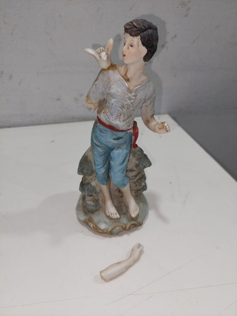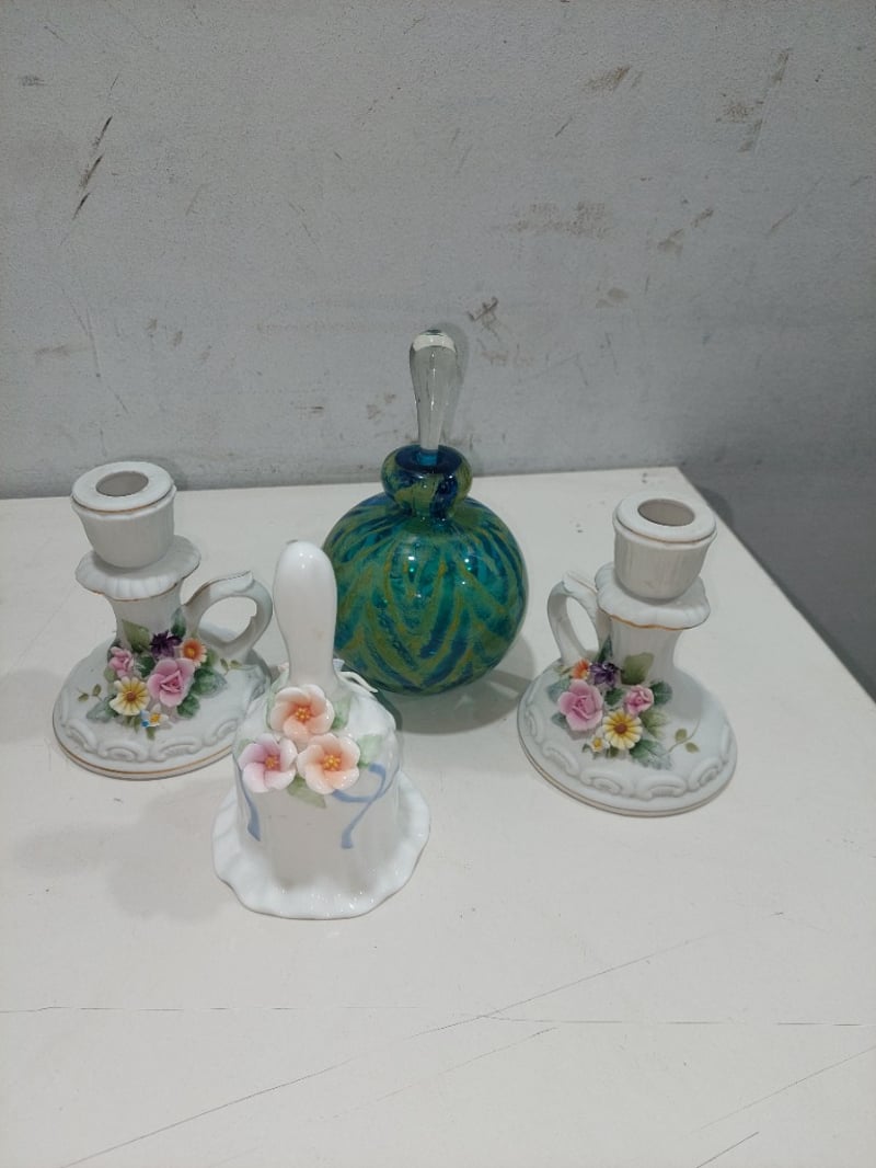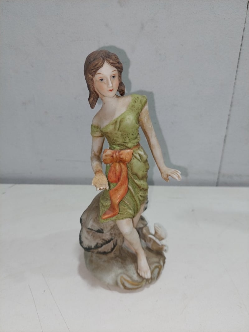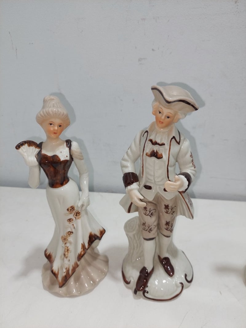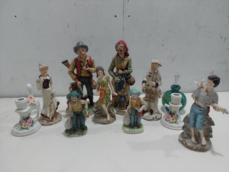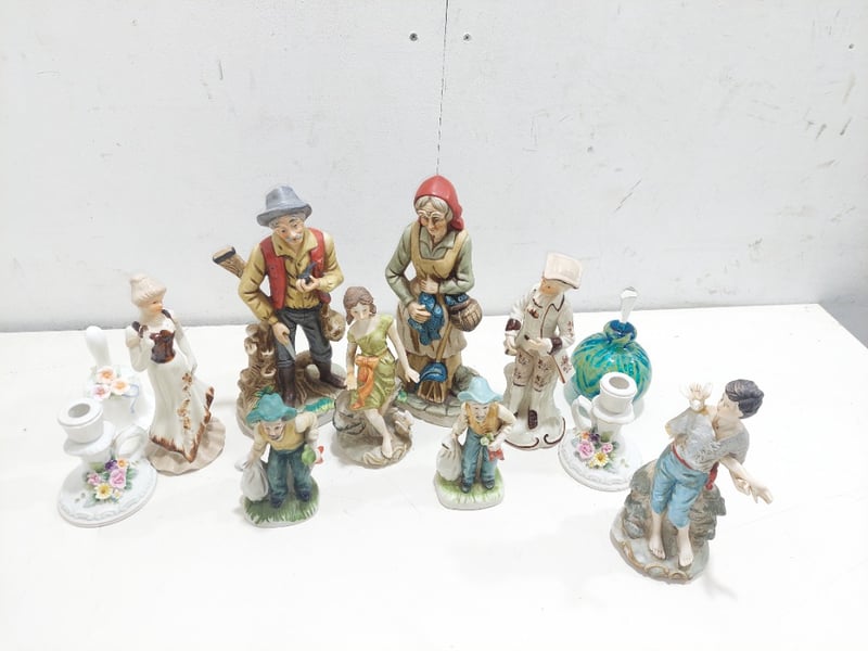 Assorted porcelain figurines and decorative items.Sold as a lot.Note: one figure has a broken arm.