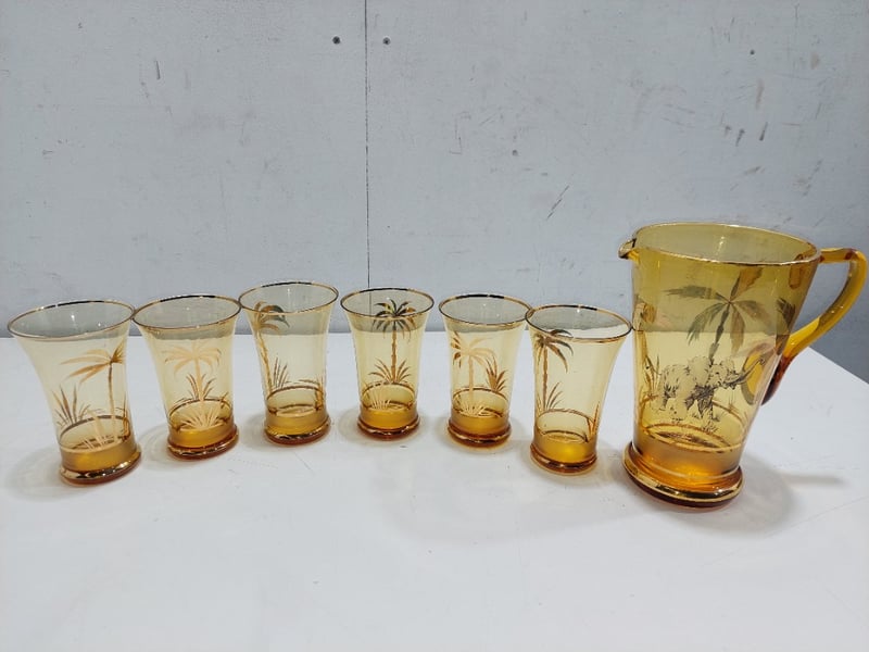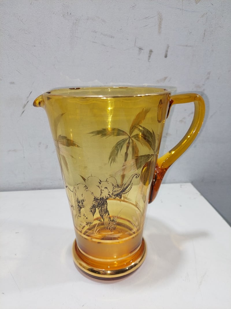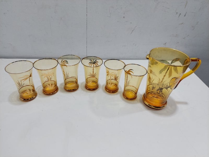 Glass pitcher and tumbler set.Sold as a lot.