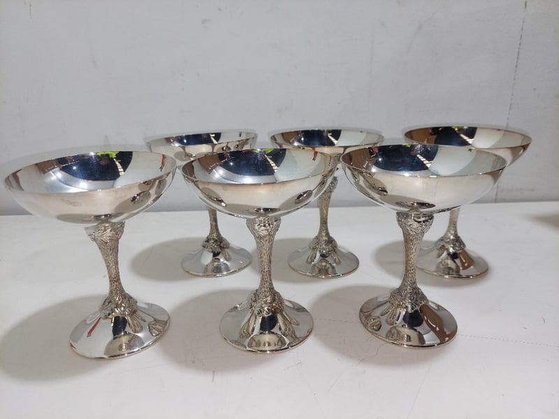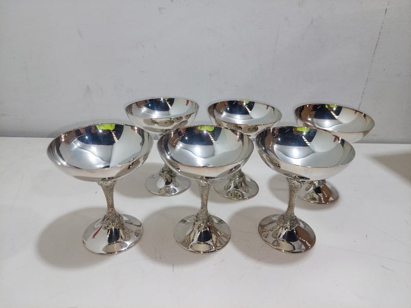 x6 Silver-plated champagne coupe glassesSold as a lot.