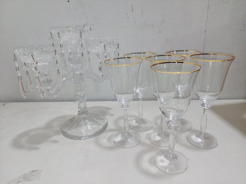 Bohemia crystal candelabra and x6 wine glasses.Sold as a lot.