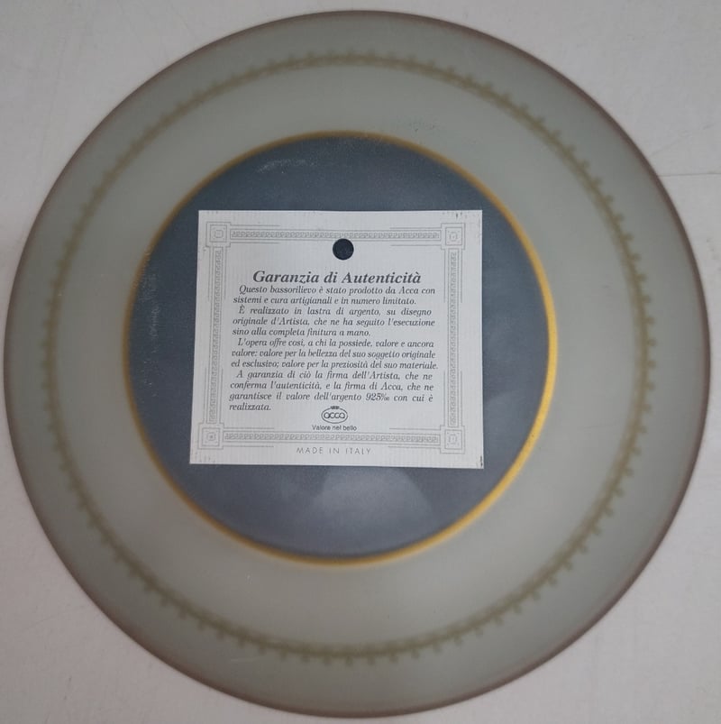 Limited-edition bas-relief artwork produced by Acca.The certificate of authenticity guarantees the value of the "925% silver" used to create the piece.