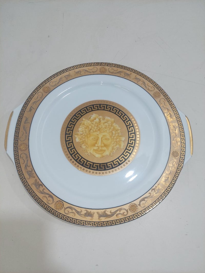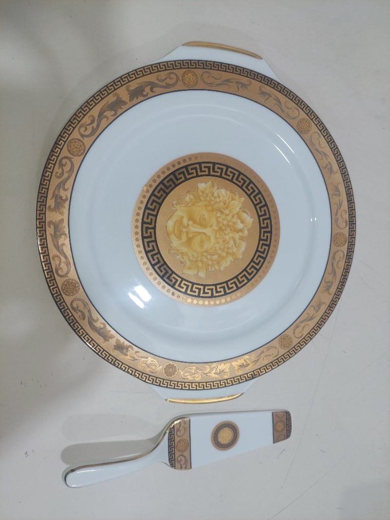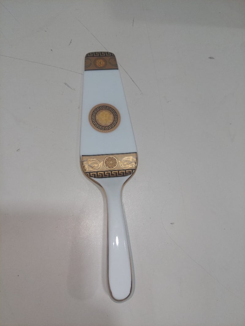 Porcelain cake platter and spatula.
