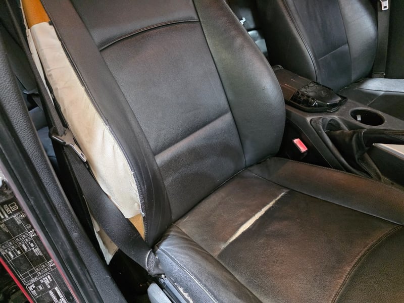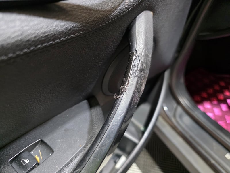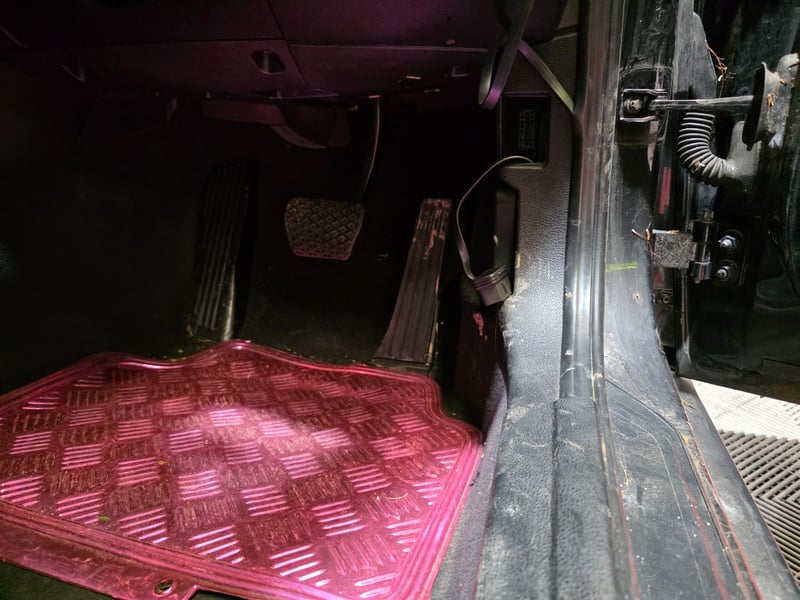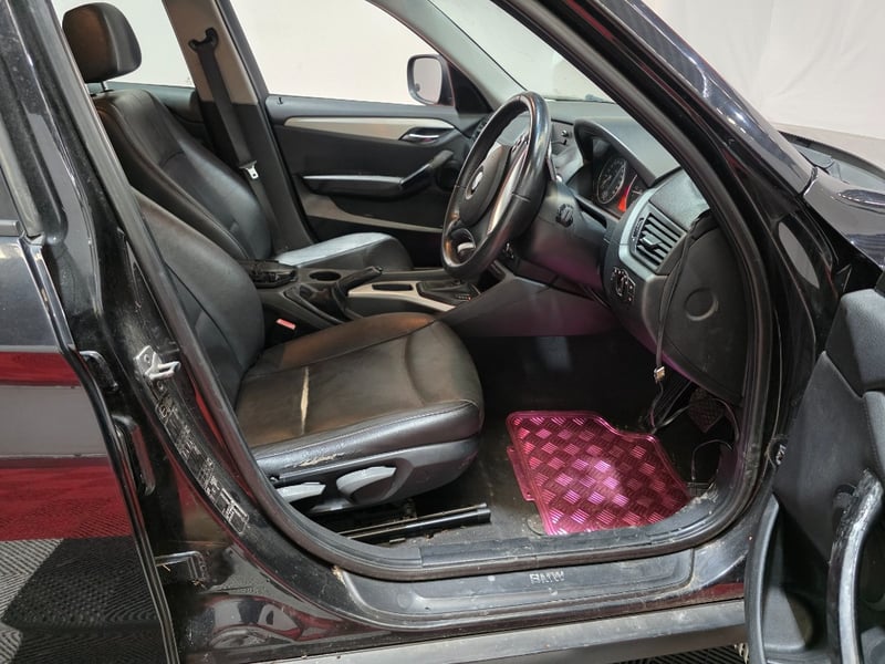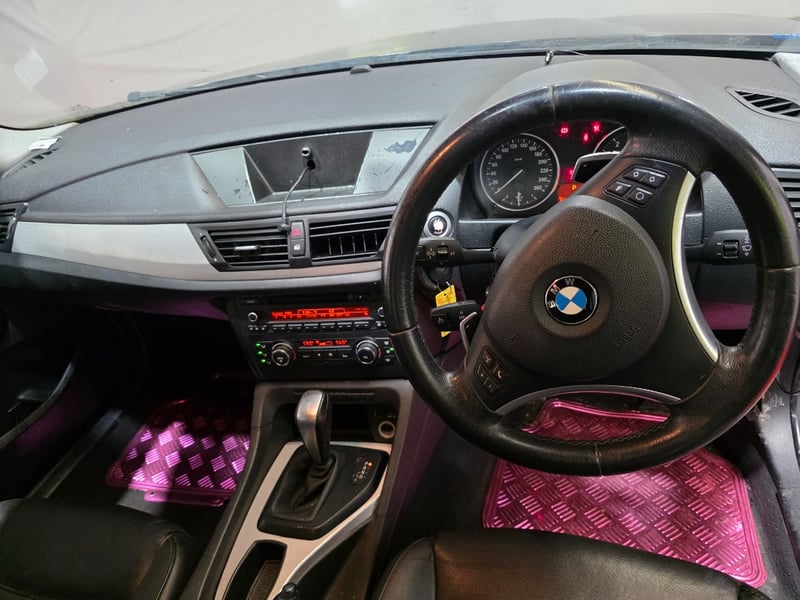 Multi-function steering wheel with cruise and media controls in leather ,driver and passenger mats in pink, electric side mirrors, Bluetooth, Vanity mirrors front passenger and driver, fold down centre arm rest with cupholders in rear middle seat, storage, padel, shifters. Rear view mirror is missing as are door trims in rear and centre console cover. Exposed wires on drivers side food well, centre screen is missing , internal door appear to have been melted back together, leather is faded, internal plastics are scratched, scuffed and marked, rear LHS tyre is down to the wire, drivers door has large dents, as does spoiler LHS passenger door is dented, rims are scratched, matt paint has been sprayed on various panels, drivers window appears to have had a large sticker peeled off, cracked windscreen, hinges and bonnet damaged.