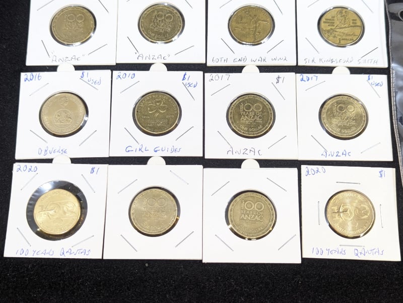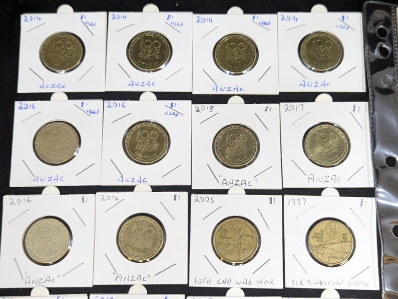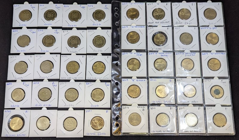 FORTY AUSTRALIAN ONE DOLLAR COINSCoins Include 2014, 2016, 2017, 2018 100 Years Of Anzac, 2020 Qantas Centenary, 2020 Donation Dollar, 2019 Royal Flying Doctor Service, EtcConditions Approx: Vf - Aunc584893+6