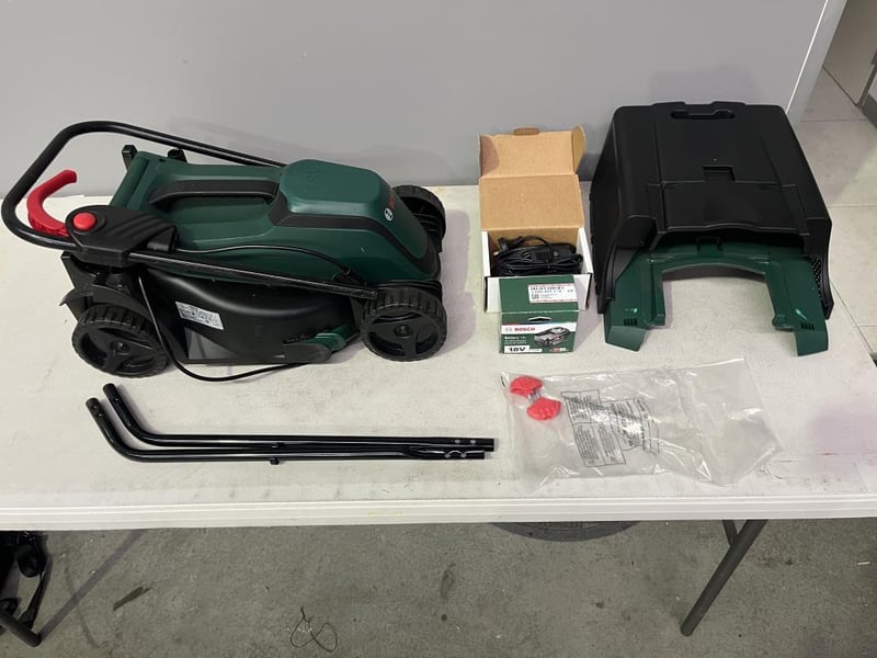 RRP $499 Bosch Home & Garden 18V Cordless Lawn Mower With 1 x 4.0Ah Battery & Fast Charger - REFURBISHED WORKING VERY GOOD CONDITION