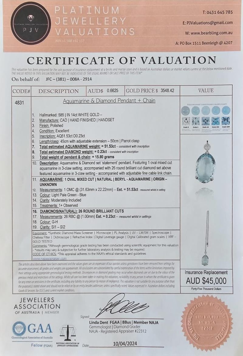 Valuations Provided by an Independent Third-Party Professional Not Directly Associated With Lloyds Auctions at AUD $45000