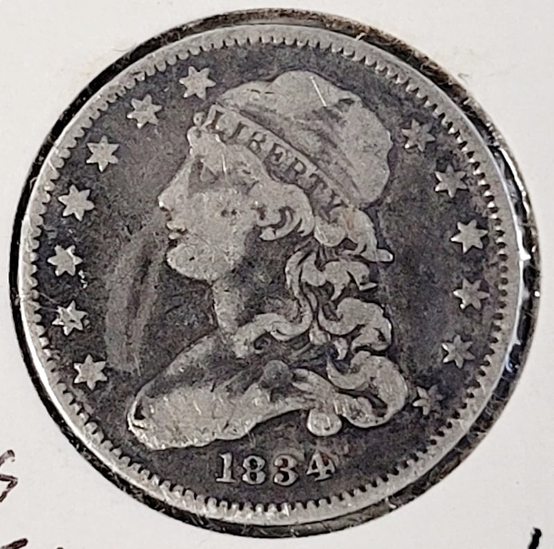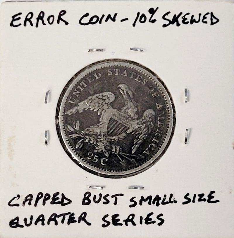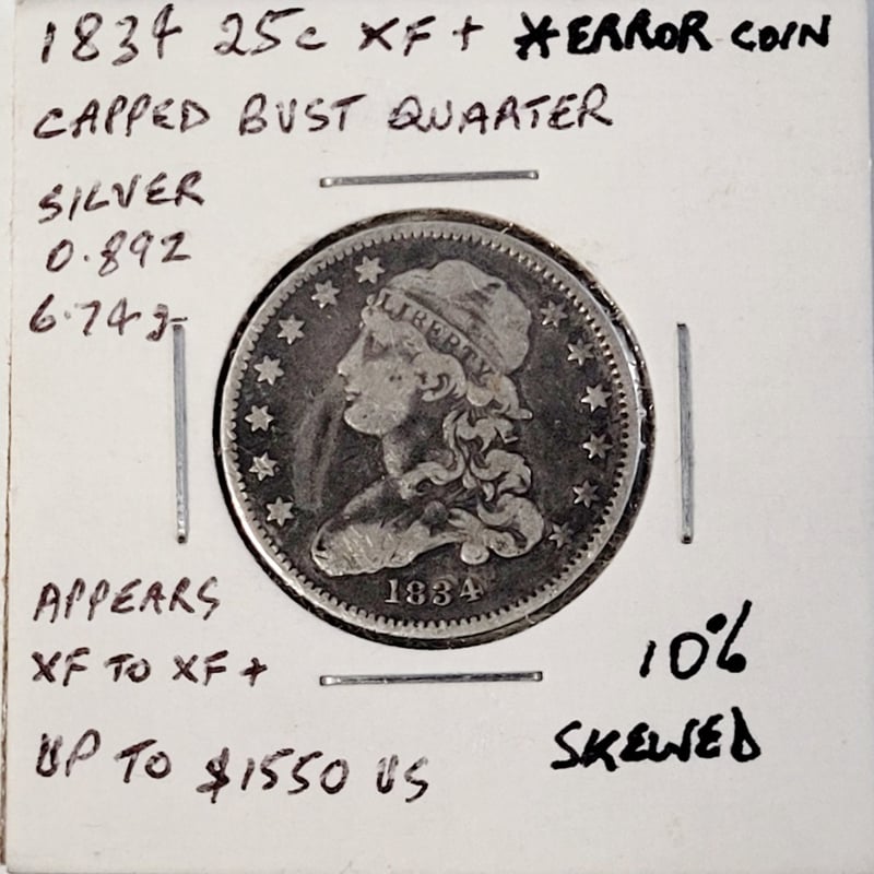 1834 CAPPED BUST SMALL SIZE QUARTER " ERROR COIN -10% SKEWED EAGLE" - HIGH GRADE