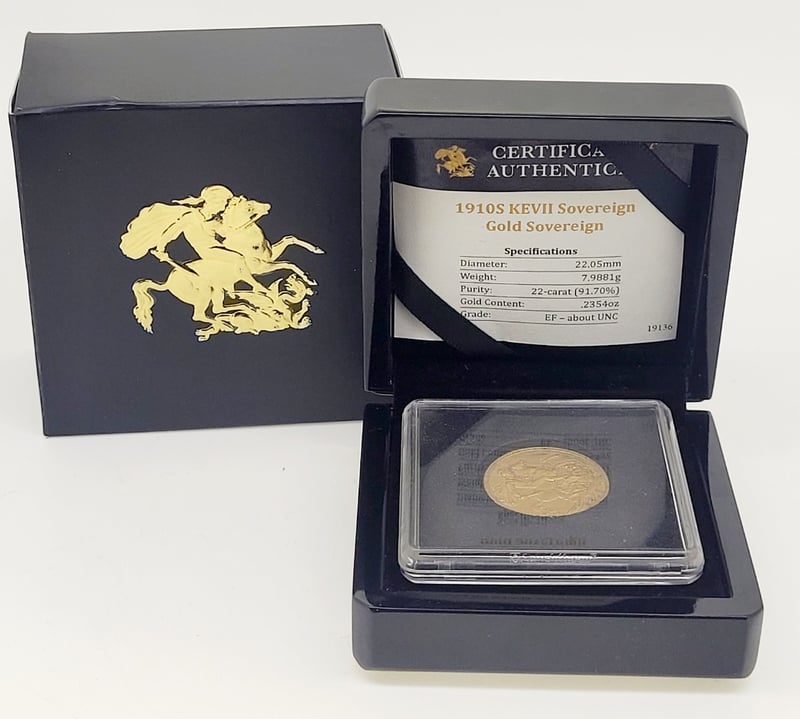 1910S SOVEREIGN D.C.S OBVERSE IN PRESENTATION BOX INCLUDES COA 488274+144