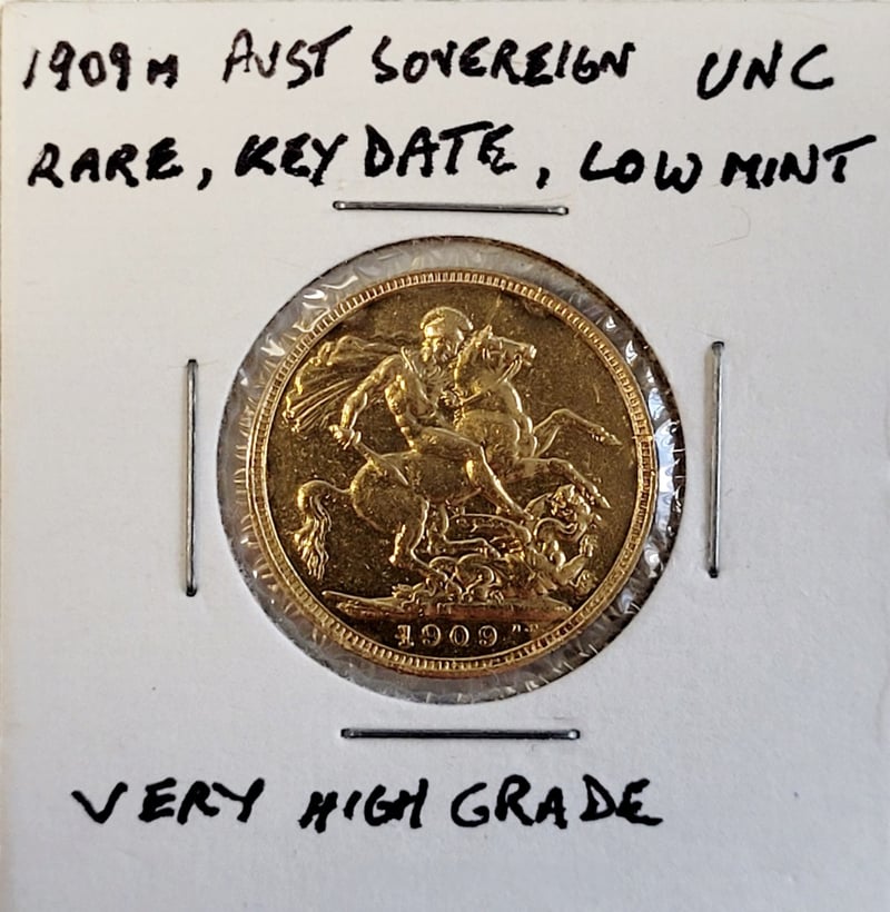 1909 M AUSTRALIAN SOVEREIGN, HIGH GRADE, KEY DATE , LOW MINT