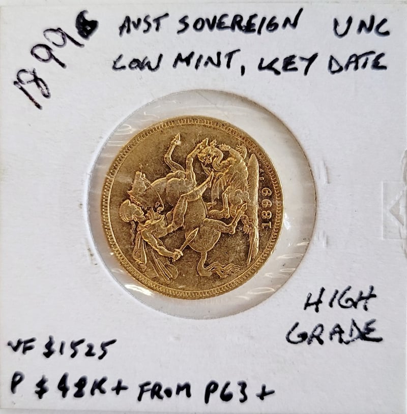 1899 S AUSTRALIAN SOVEREIGN KEY DATE , LOW MINTAGE , HIGH GRADE