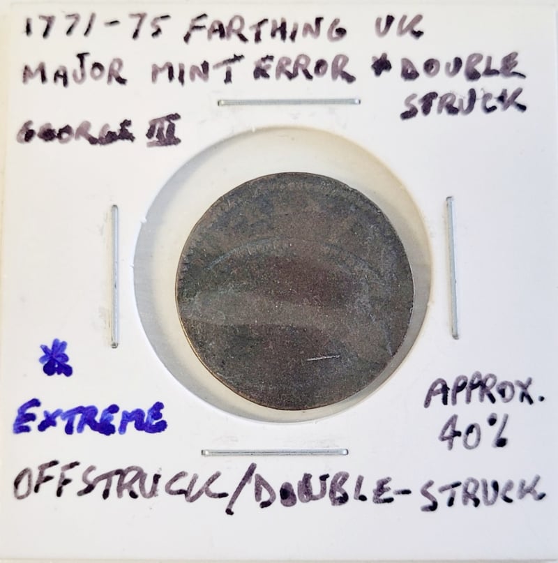 1771-1775 FARTHING UK GEORGE III MAJOR MINT ERROR 40% MIS-STRIKE488274+77