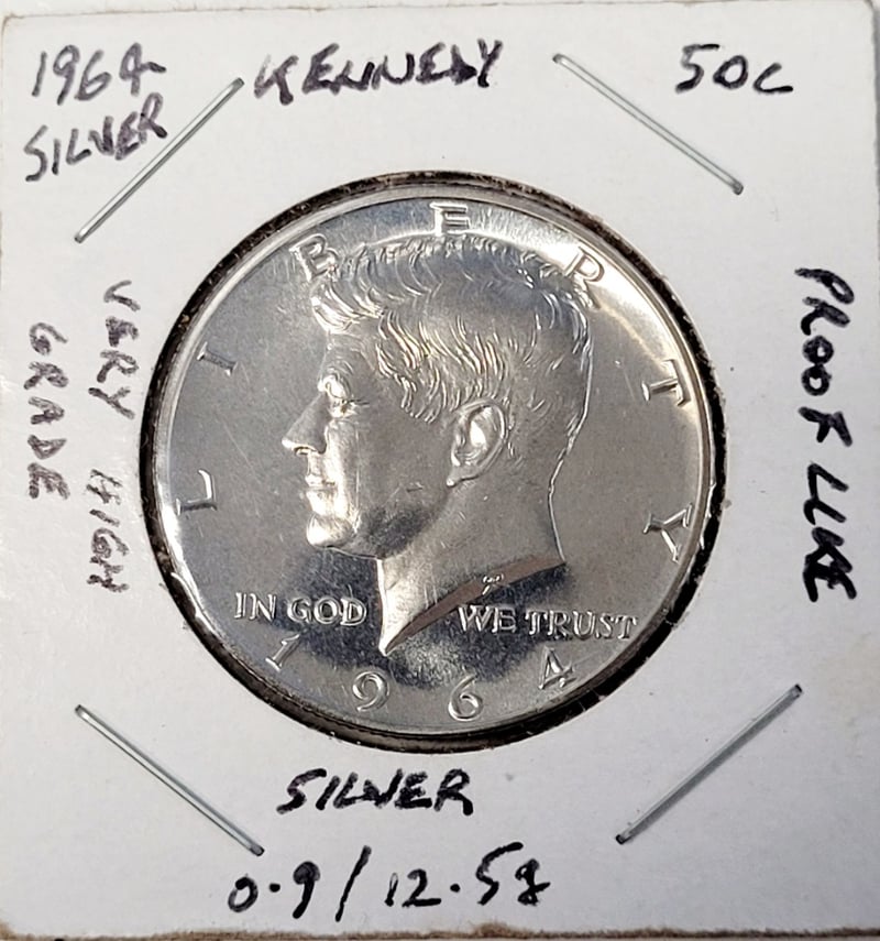 1964 KENNEDY SILVER HALF DOLLARVery High Grade , Proof Like , Very Hugh Lustre Silver 0.9/12.5G488274+40