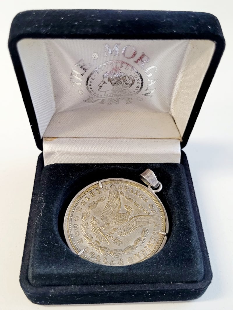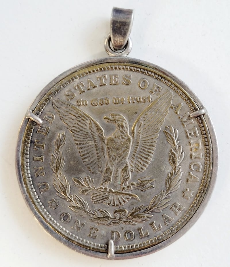 1882 S MORGAN SILVER DOLLAR W/ GOLD HIGHLIGHTS IN SILVER ( MARKED 925) PENDANT HOLDER488274+83