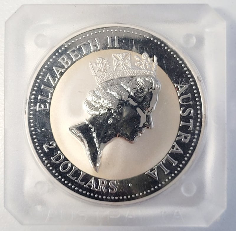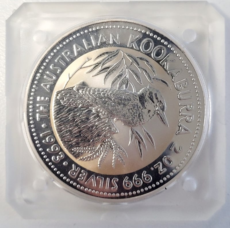 1993 2OZ SILVER KOOKABURRA SPECIMEN PROOF BULLION COIN IN CAPSULE - TWO DOLLAR COIN , .999 SILVER, PERTH MINT488274+142