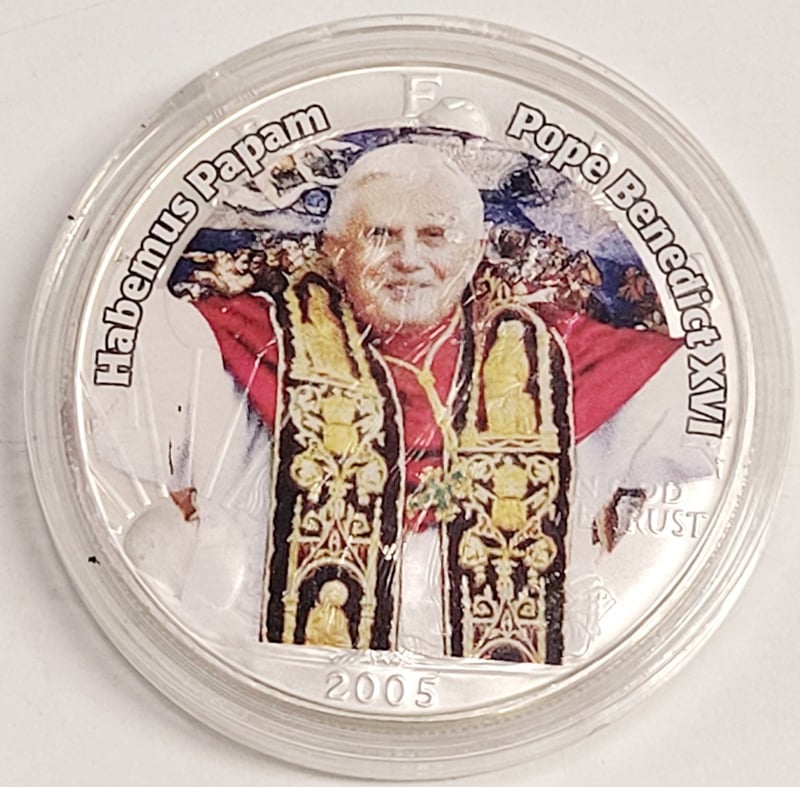 2005 1OZ FINE SILVER USA EAGLE $1 "POPE BENEDICT XVI SPECIAL ISSUE (COLOURISED) - SCARCE, PROOF