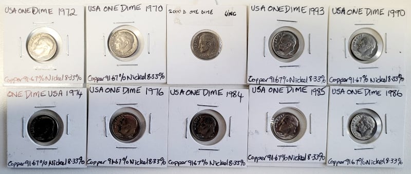 COLLECTION OF ROOSEVELT DIMESProvenance: Includes - 1970 , 72 , 74 ,76 , 84 , 85, 86 ,90, 93 And 2000 Unc488274+81