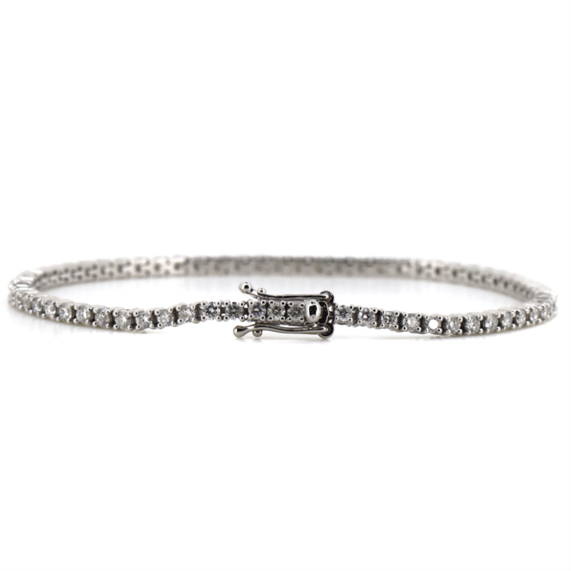 9K WHITE GOLD, 2.00CT TDW DIAMOND, TENNIS BRACELET. THE DESIGN FEATURES, 67 ROUND BRILLIANT CUT, DIAMONDS (2.00CT TDW, G-H COLOUR, SI1-SI2 CLARITY), 4-CLAW SET. THE BRACELET HAS A BOX CLASP WITH DOUBLE FIGURE 8 CLASPS. BRACELET LENGTH IS 17.00CM.