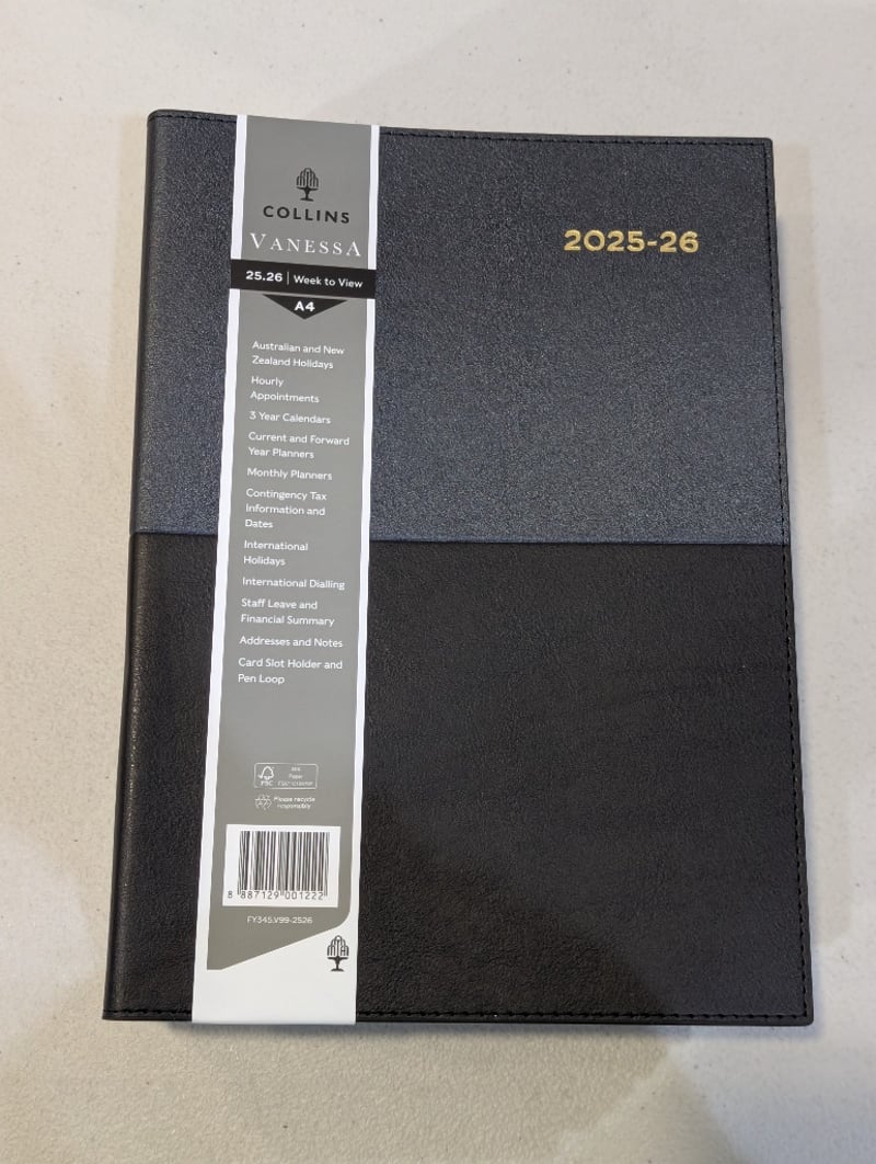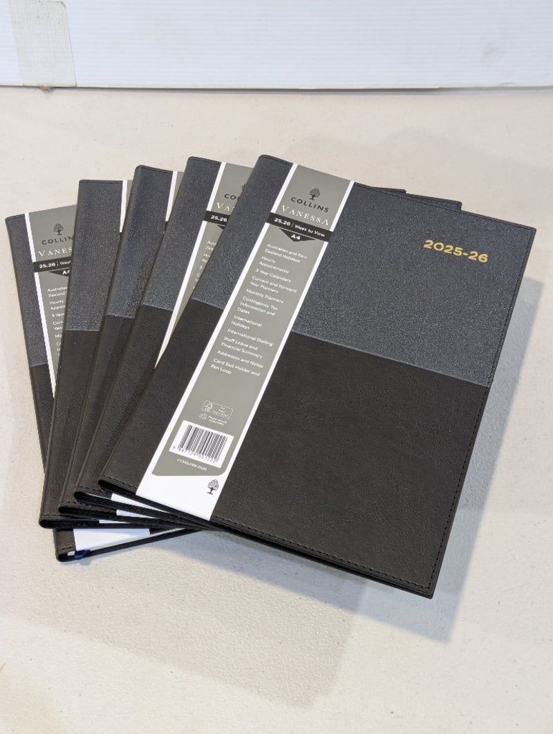 5 x A4 25/26 Financial Year Diaries, Colour Black