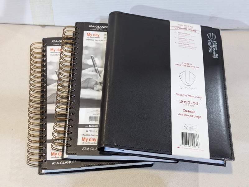 A4 25/26 Financial Year Diaries, Various Styles AAG4D12526 x 2 UPFY924225 x 1 SOLD AS LOT