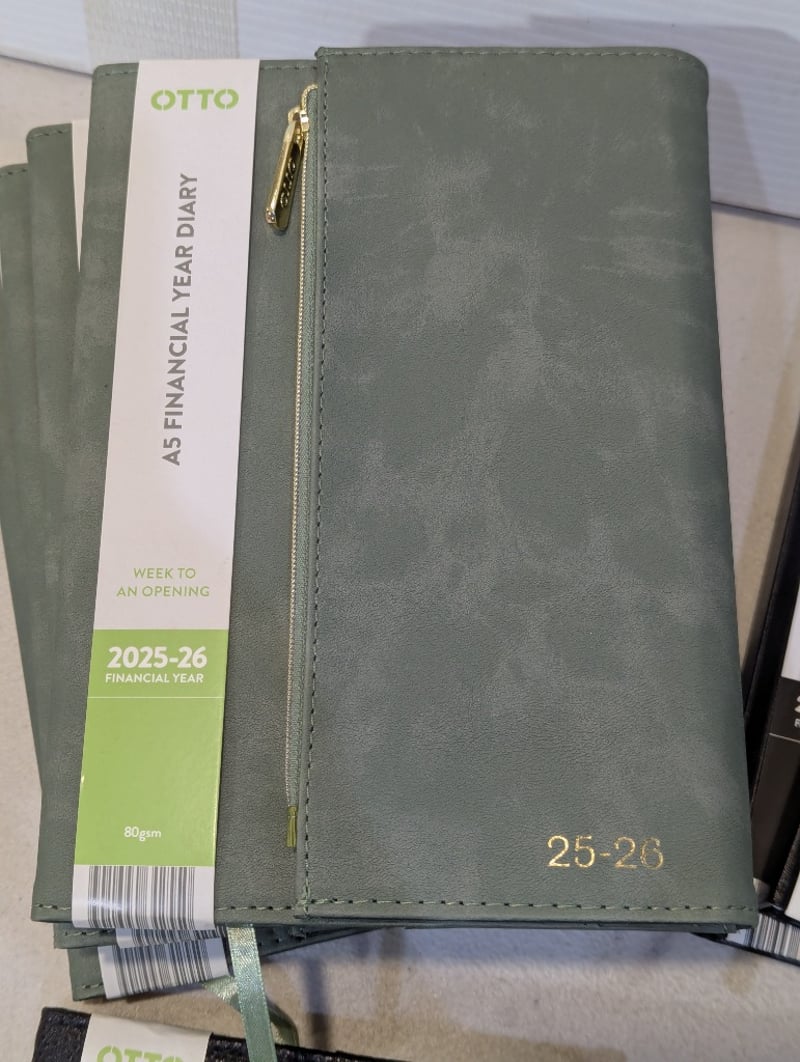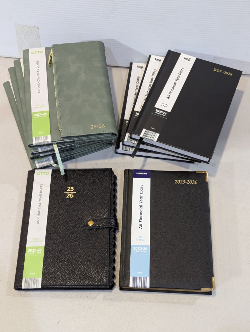 A4 25/26 Financial Year Diaries, Various Styles OT5WTZ2F25 x 4 JB5DELF25B x 1 KEA5DHCF25 x 3 OT5WPU1F25 x 1 SOLD AS LOT