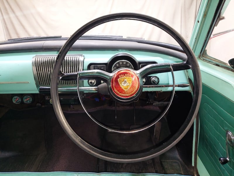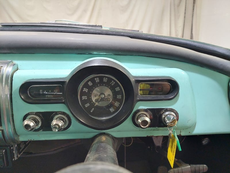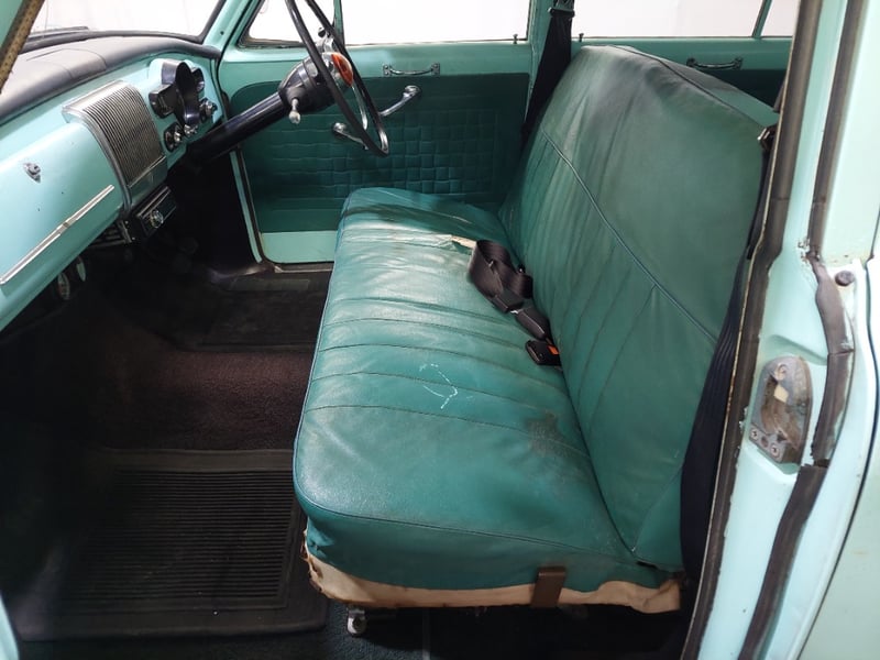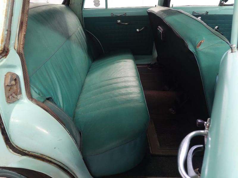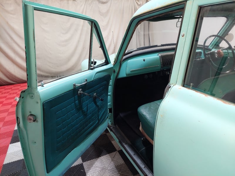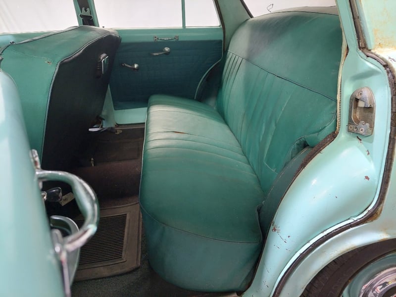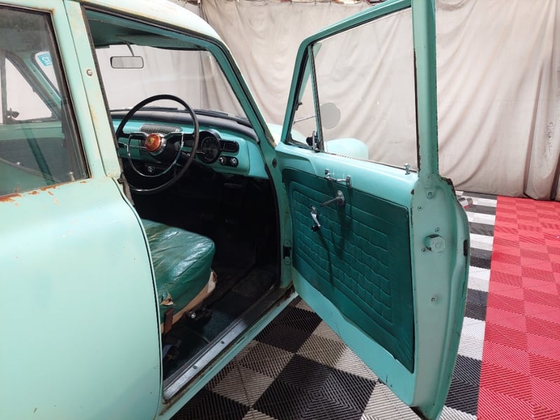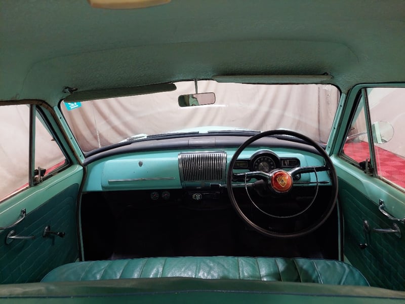 A classic rear-wheel-drive 4-door sedan finished in Green, powered by a 138 I6 (2.3 litre) petrol engine paired with a 3-speed manual transmission. Odometer indicates 14,434 miles, seating for six.