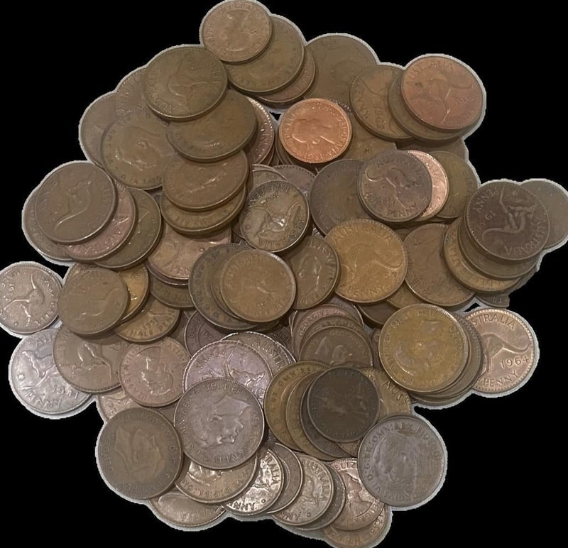 ONE KILO OF AUSTRALIA KGV/KING GEORGE VI/QUEEN ELIZABETH MIX DATE & CONDITION BULK PENNIES & HALF PENNIES MIXED CONDITION 311120+43