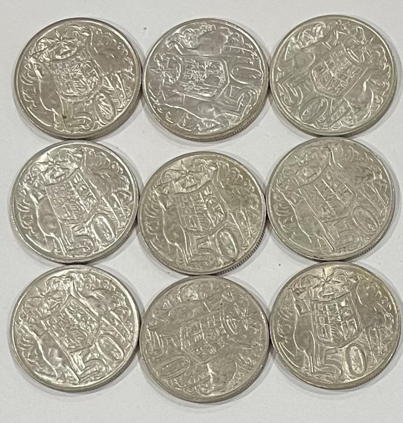 9 X 1966 AUSTRALIA FIRST & LAST SILVER FIFTY CENTS UNC 23528+51