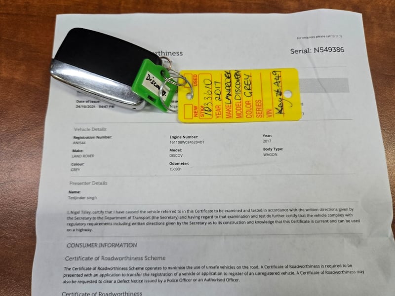 With RWC Issue Date, 24/10/2025 engine light on,.