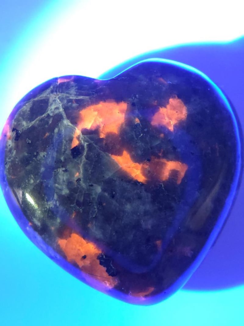 87CT FLUORESCENT SODALITE (YOOPERLITE) – HEART CUT, 30MM, CERTAUTH™ 352704 Certified 87Ct Fluorescent Sodalite, Also Known As Yooperlite, Carved Into A Polished Heart Shape. Displays A Mottled Grey Body Tone With Strong Orange-Red Fluorescence Under Uv Light. A Striking And Collectible Mineral Specimen Ideal For Display Or Energy Work.Details:• Gemstone: Fluorescent Sodalite (Yooperlite)• Weight: 87Ct• Colour: Grey With Mottled Inclusions, Orange-Red Uv Fluorescence• Cut: Heart, Polished• Dimensions: ~30Mm• Clarity: Opaque• Treatment: None• Origin: Unknown• Certification: Certauth™ 352704• Estimated Value: Usd $120 Condition: Good - Refer Images 0488303+352704