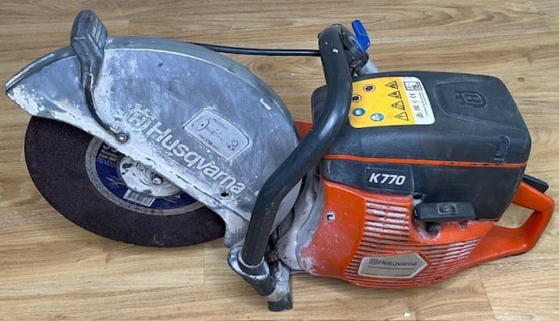Demolition saw. 1 x Husqvarna K770. Condition: Not working, untested, for parts or repair, has compression.