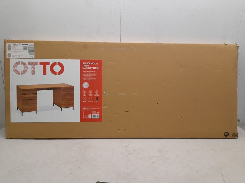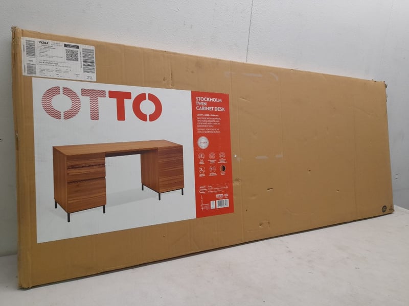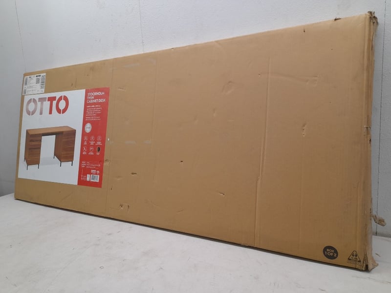 OTTO Stockholm Twin Cabinet Desk, 1500mm, Walnut/Black Note: Box displays signs of wear