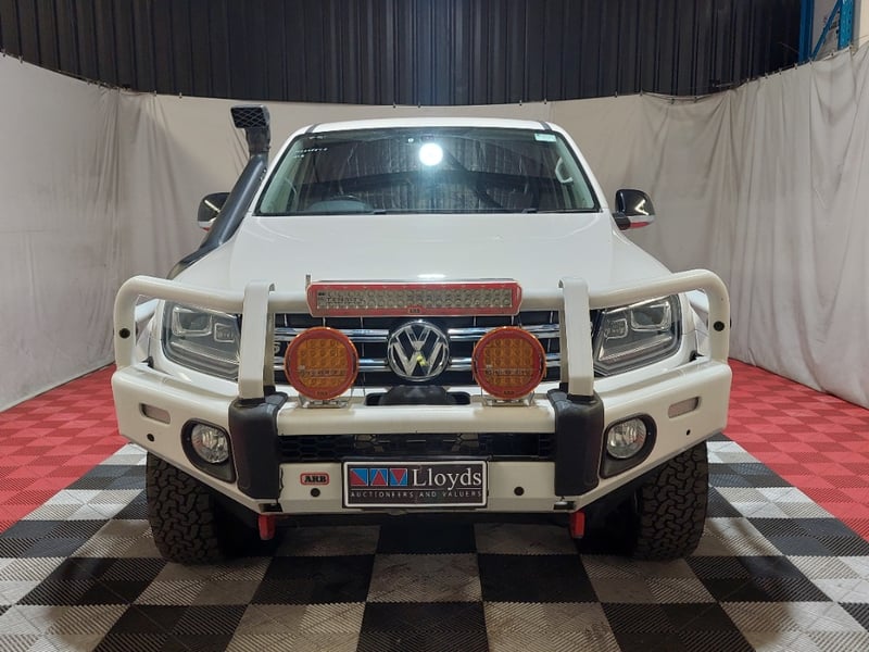 2016 Volkswagen Amarok 2H 550 Highline Year: 2016 Make: Volkswagen Model: Amarok Series: 2H Badge: 550 Highline Body: Dual Cab Utility Drive Type: Four-wheel drive Odometer: Indicating 95,600 Kilometres Engine: 3.0 V6 Turbo Diesel Transmission: Automatic Colour: White Seats: 5 Description/extras: Air Conditioning, Power windows, SRS, Central locking, CD player. As seen on Pat Callinan's 4X4 Adventures Fully loaded off-road ready Amarok V6 with Highline leather interior, electric seats and Black Duck 4-Elements front seat covers. Comprehensive ARB 4X4 accessories fitted, including steel Summit bulbar fitted with ARB Intensity light bar and spotlights. Side rails, sidesteps and steel rear bar with integrated tow bar also installed. Long Ranger long range fuel tank giving the vehicle in excess of 1200km range. Old Man Emu Suspension with alloy wheels and BF Goodrich All-terrain tyres. Safari snorkel and ARB canopy also installed. With its low kilometres and big-dollar accessory package this is a one of a kind V6 Amarok. VIN: WV1ZZZ2HZHH003260 ENG No: DDX006549 (as per PPSR) (Key #26B Marple) Lloyd's stock #1026688+1 #PCV