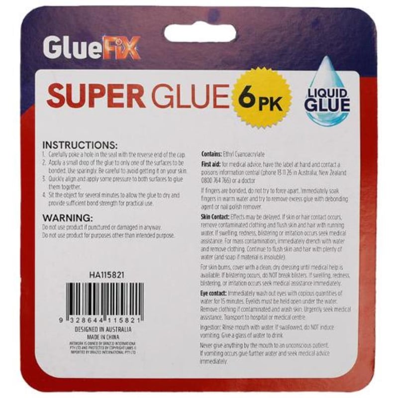 Carton of 20 X 6pk GlueFIX Super Glue 3gr Water Resistant, Quick Dry, Dries Clear, Precision Anti-ClogCap. 120 tubes all up. SOLD AS 1 LOT