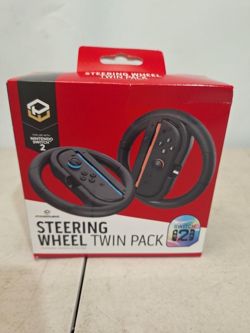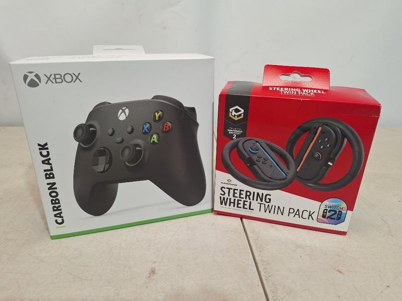 1 x XBOX wireless controller, carbon black, RRP$99.95, NEW factory sealed in box, 1 x POWERWAVE steering wheel twin pack, NEW factory sealed in box