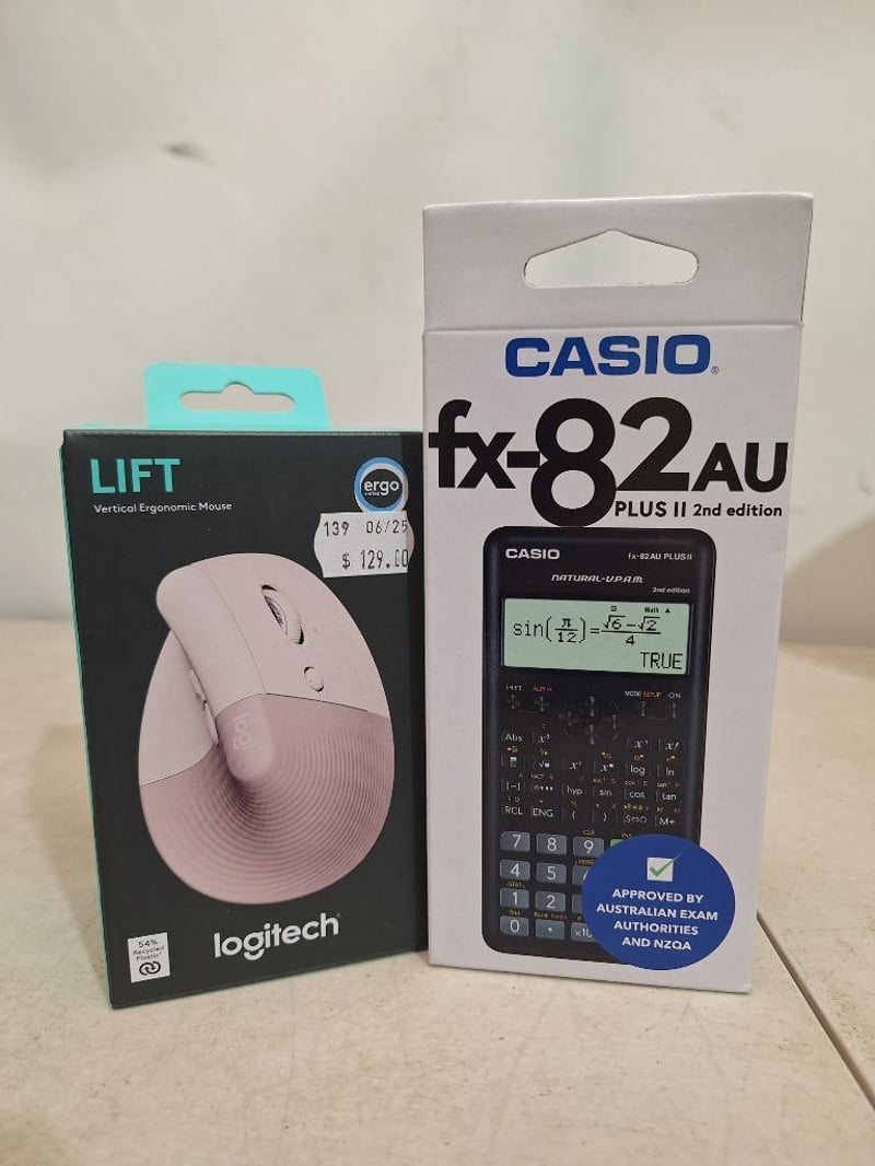 1 x LOGITECH LIFT vertical ergonomic mouse, RRP$129.00, NEW factory sealed in box,1 X CASIO fx-82AU, Plus 112nd edition calculator, NEW factory sealed in box