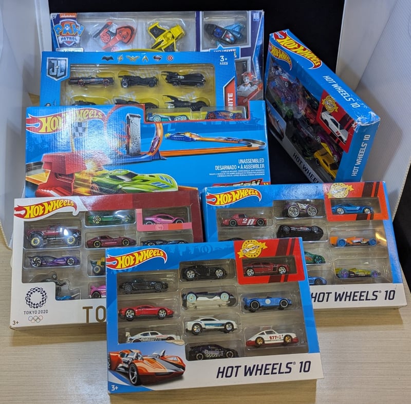 Includes Paw Patrol Jet Gift Pack, Hot Wheels Mega Ralley Set, Hot Wheels Justice League Set, Three Hot Wheels 10 Car Sets, Hot Wheels Tokyo 2020 Car Set