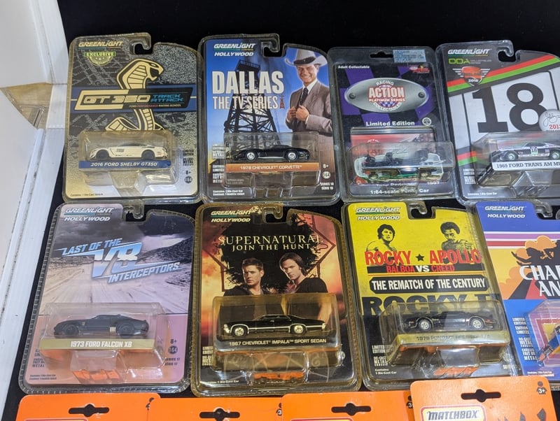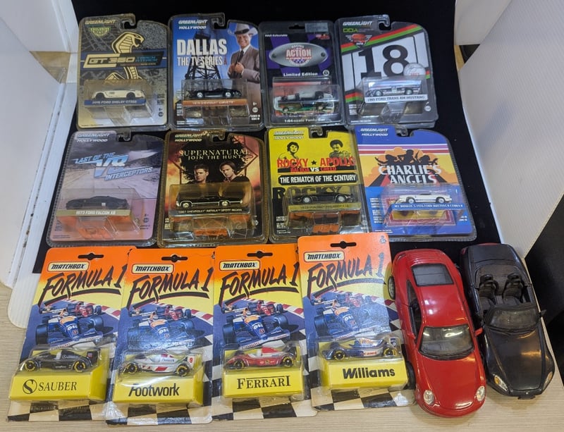 COLLECTION OF MODEL CARSIncludes Four Matchbox Formula 1 Cars, Various Pop Culture Car Models Including Supernatural 1967 Chevrolet Impala, Charlies Angels 1976 Ford Mustang, Dallas 1978 Chevrolet Corvette, Etc584959+106