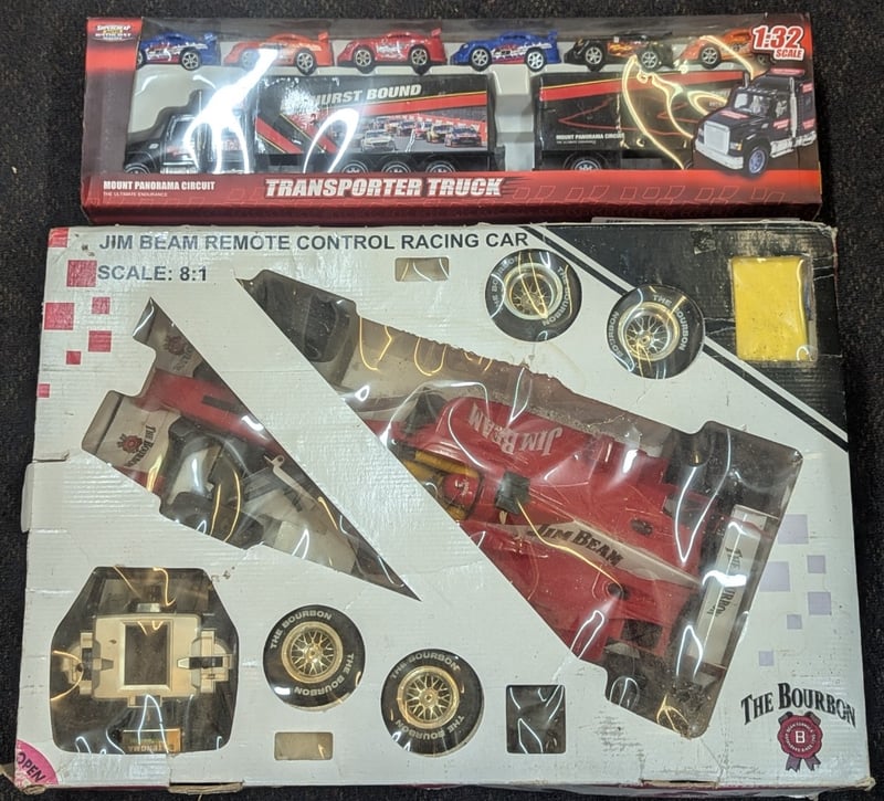 8:1 SCALE JIM BEAM REMOTE CONTROL RACING CAR AND MOUNT PANORAMA CIRCUIT TRANSPORTER TRUCK MODELItem Untested584959+116