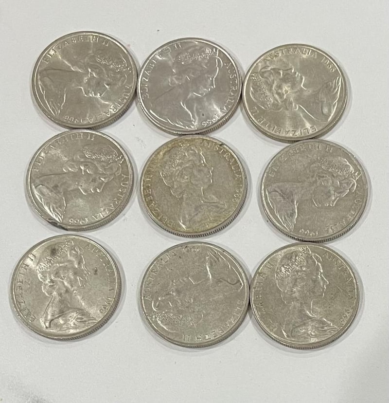 9 X 1966 AUSTRALIA FIRST & LAST SILVER FIFTY CENTS UNC 311126+51