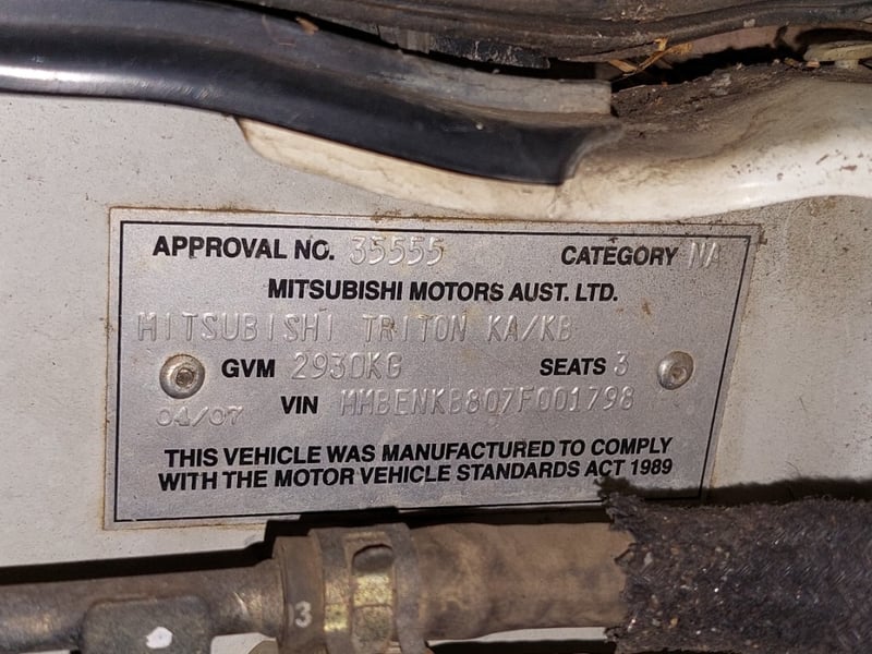 2006 Mitsubishi Triton Year: 2006Make: MitsubishiModel: TritonBody: Single Cab UtilityDrive Type: Four wheel driveOdometer: Indicating 363,116 KilometersEngine: 3.2 I6 PetrolTransmission: 5-Speed ManualColour: WhiteSeats: 3Description/extras: Air Conditioning, Power windows, SRS, AUX / USB, Towbar. Wear and tear throughout, rust on tray refer to photos. VIN: MMBENKB807F001798ENG No: 4M41UCAD8995(as per PPSR)Sold unregistered(Key #RA4)Lloyds stock #580831+1