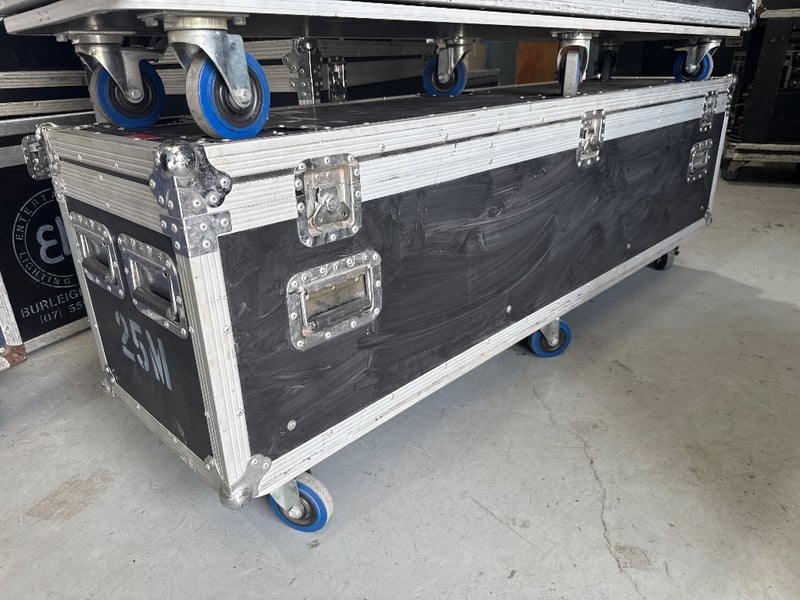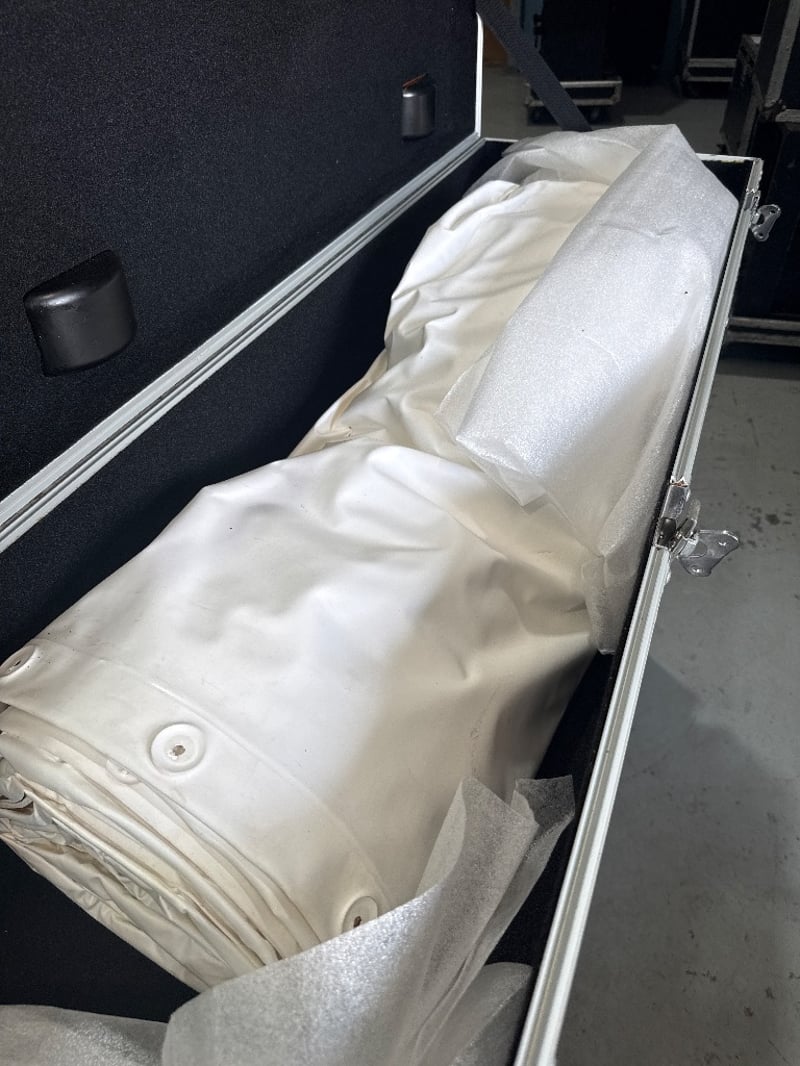 24 ft x 5ft 5in White Lace up Screens in Road Case with Wheels
