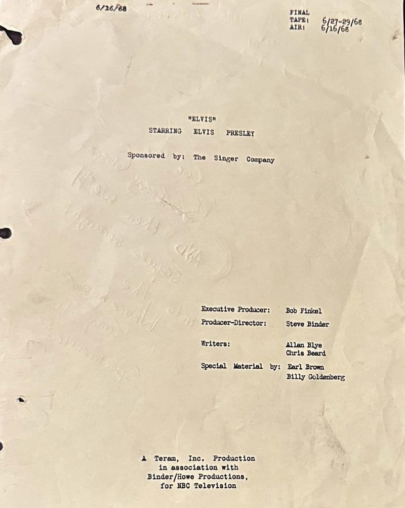Script Prop Used In The Elvis Movie (2022). The Item Is Accompanied By A Certificate Of Authenticity.
