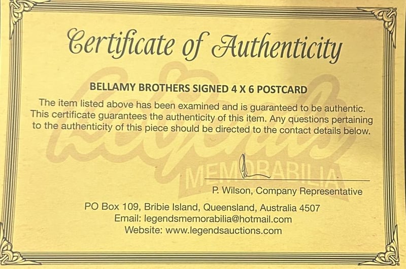 The Bellamy Brothers Personally Signed 4 X 6 Postcard. The Bellamy Brothers Are An American Pop And Country Music Duo From Darby, Florida. The Duo Consists Of Brothers David Milton Bellamy And Homer Howard Bellamy. The Item Is Accompanied By A Certificate Of Authenticity.