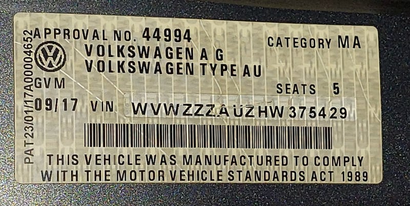 2017 Volkswagen Golf BQ12NZ 110TSI Trendline