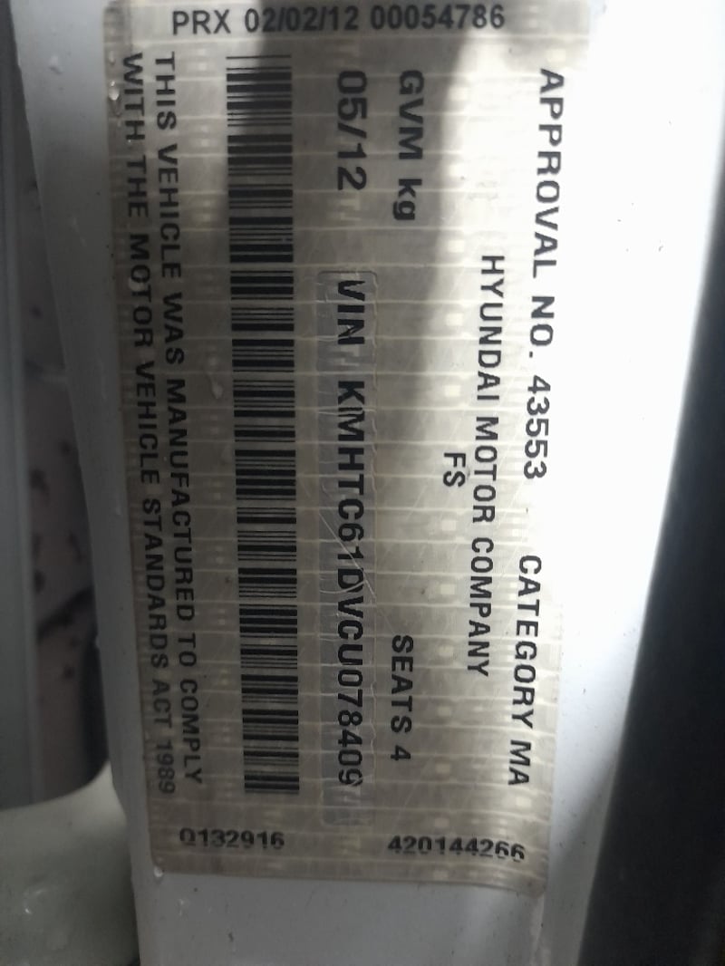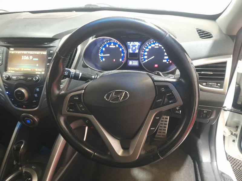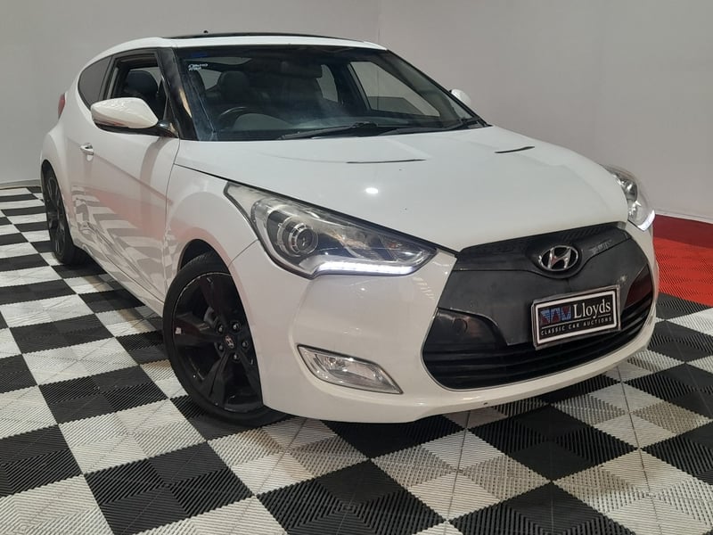 2012 Hyundai Veloster FS2 Veloster + Year: 2012 Make: Hyundai Model: Veloster Series: FS2 Badge: Veloster + Body: 3-Door Coupe Drive Type: Front wheel drive Odometer: Indicating 191,733 Kilometers Engine: 1.6 Turbo Petrol Transmission: Automatic Colour: White Seats: 4 Description/extras: Air Conditioning, Power windows, SRS, Sat Nav, Power seats, Tinted windows, Cruise control, Leather interior, Alloy wheels, AUX / USB, Sunroof, Reverse camera, Central locking, CD player. Paddle shift, multifunctional steering wheel, marks and scratches,. VIN: KMHTC61DVCU078409 ENG No: G4FDCU863778 AS PER PPSR (Key #R20) Lloyds stock #584203+1