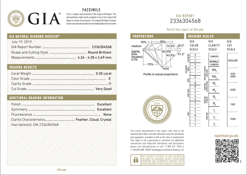 NATURAL DIAMOND ROUND 0.3CT E I1 GIA CERTIFIED Dimensions: 4.33 X 4.35 X 2.63mms Accompanied By Gia Report Number Gia - 2336304568 Condition: Good - Refer Images 0 162992+6 CROSSDOCK