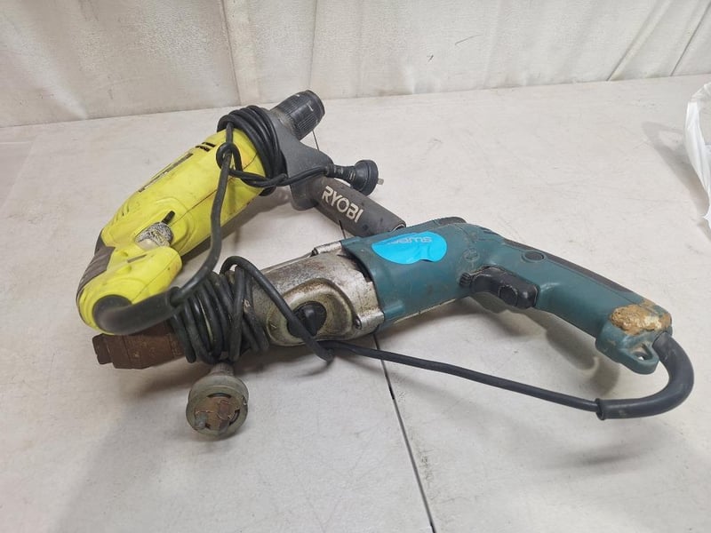1 x RYOBI Variable speed hammer drill, model: D620H, 1 x MAKITA percussion drill, model:HP2051F, 720W