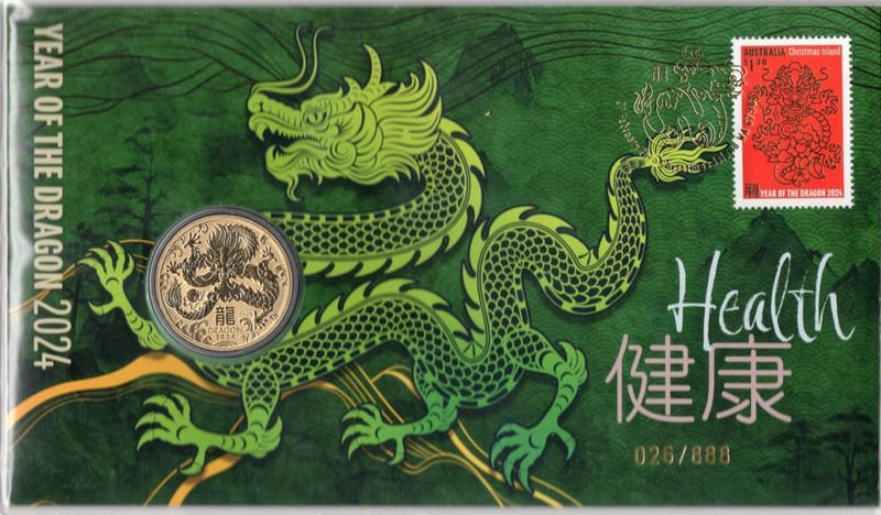 AUST 2024 HEALTH YEAR OF THE DRAGON Australia 2024 Health $1 Coloured Coin Pnc Year Of The Dragon 584941+9