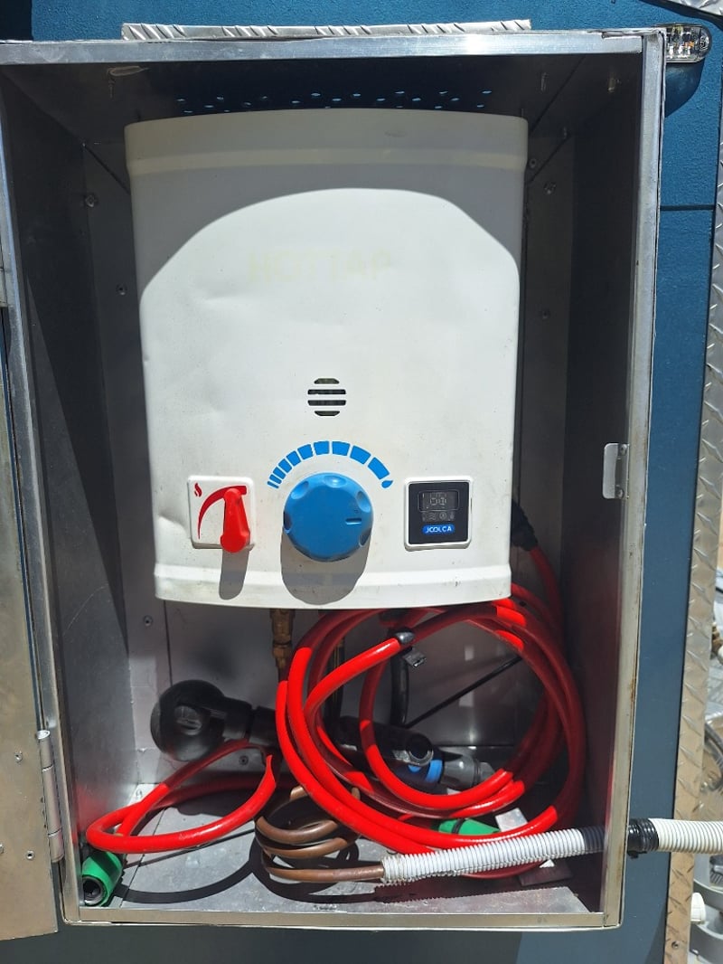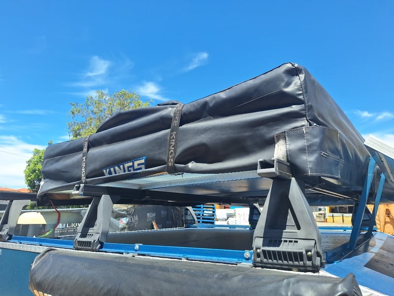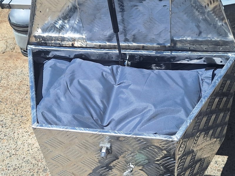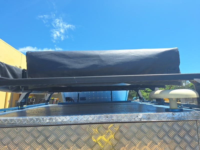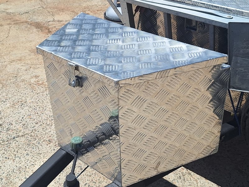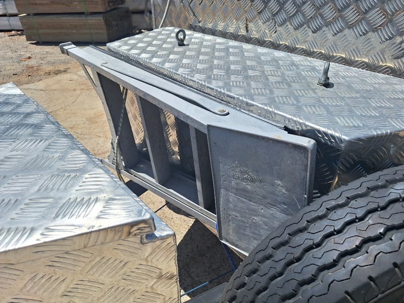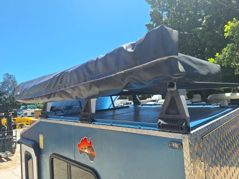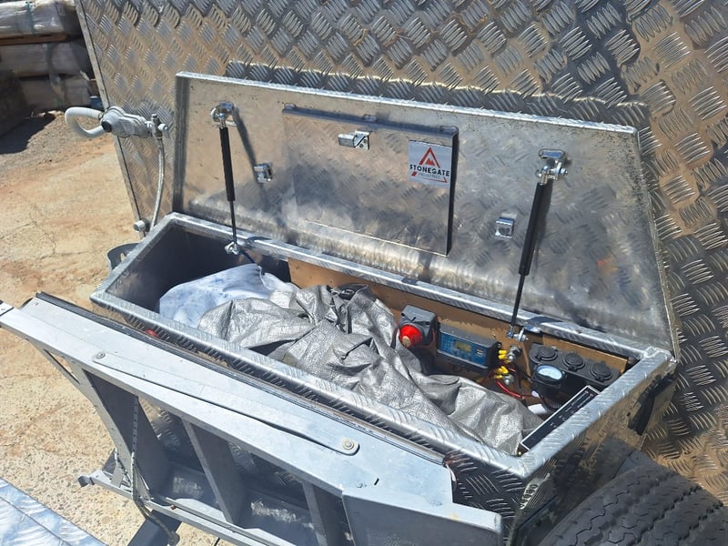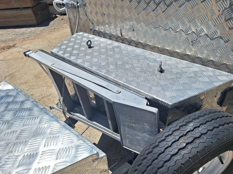 Description/Extras: Custom Built Camper Trailer, 50mm Hitch, Jockey Wheel, 7Pin Flat Male Connection, Front Mounted Checkerplate Storage x 2, Includes Tarps And Canvasses, Battery Isolater, Solar Charge Controller, Full Automatic Protect Quick Charger, Spare Tryre, Hot Water System With Portable Shower, Table, Retractable Awnings, Solar Panel, Kings Slide Out Fridge Freezer, Roof Mounted Pop Up Tent, Internal Matress, Lights, T.V, Oven, Portable Toilet, Plus More