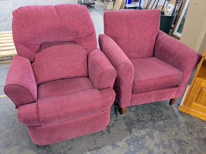 Furniture, 7 pieces including 2 x armchairs, bar cabinet, dining table and more